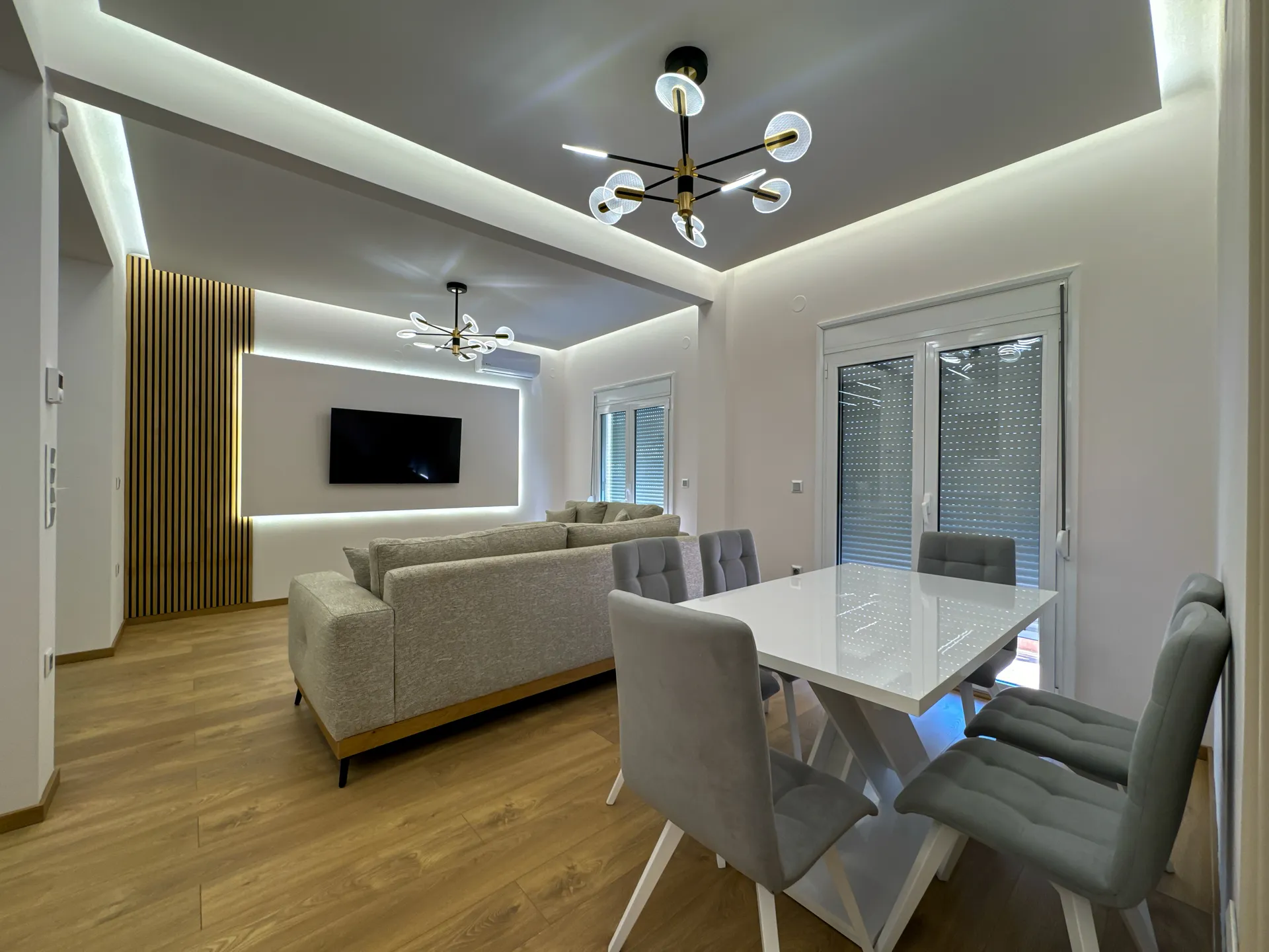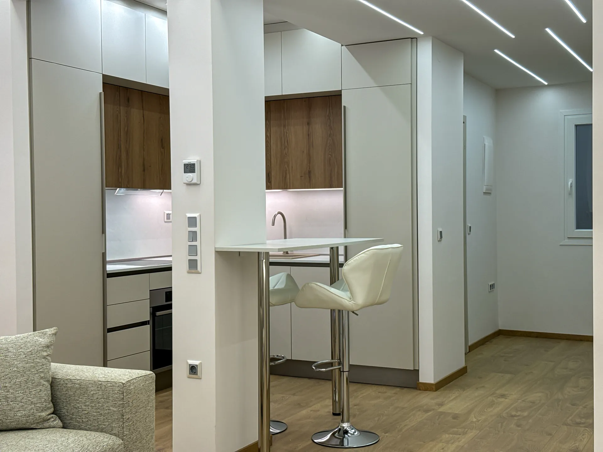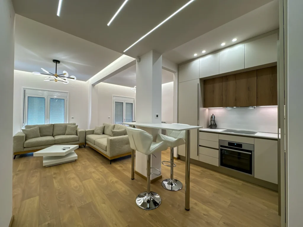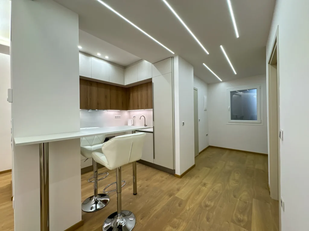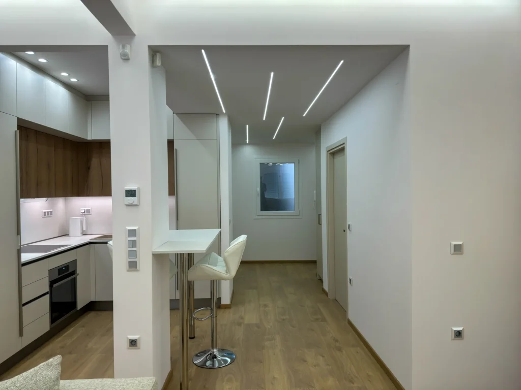 Το έργο αφορούσε την ανακαίνιση και τον εκσυγχρονισμό διαμερίσματος στην περιοχή της Μ. Αλεξάνδρου. Κεντρικός στόχος ήταν η αναβάθμιση της λειτουργικότητας και η δημιουργία ενός άνετου, φωτεινού και σύγχρονου χώρου. Στο πλαίσιο της ανακαίνισης πραγματοποιήθηκαν εργασίες αντικατάστασης δαπέδων, νέες ηλεκτρομηχανολογικές εγκαταστάσεις, καθώς και ανακατασκευή της κουζίνας και του μπάνιου με έμφαση στη λεπτομέρεια και την ποιότητα των υλικών. Παράλληλα, εφαρμόστηκαν ενεργειακές παρεμβάσεις που συμβάλλουν σε χαμηλότερη κατανάλωση και βελτιωμένη καθημερινή άνεση. Το τελικό αποτέλεσμα συνδυάζει καθαρές γραμμές, μοντέρνα αισθητική και πρακτικές λύσεις που ανταποκρίνονται στις ανάγκες των ενοίκων, αναδεικνύοντας το διαμέρισμα σε έναν χώρο ζεστό, λειτουργικό και υψηλής ποιότητας.