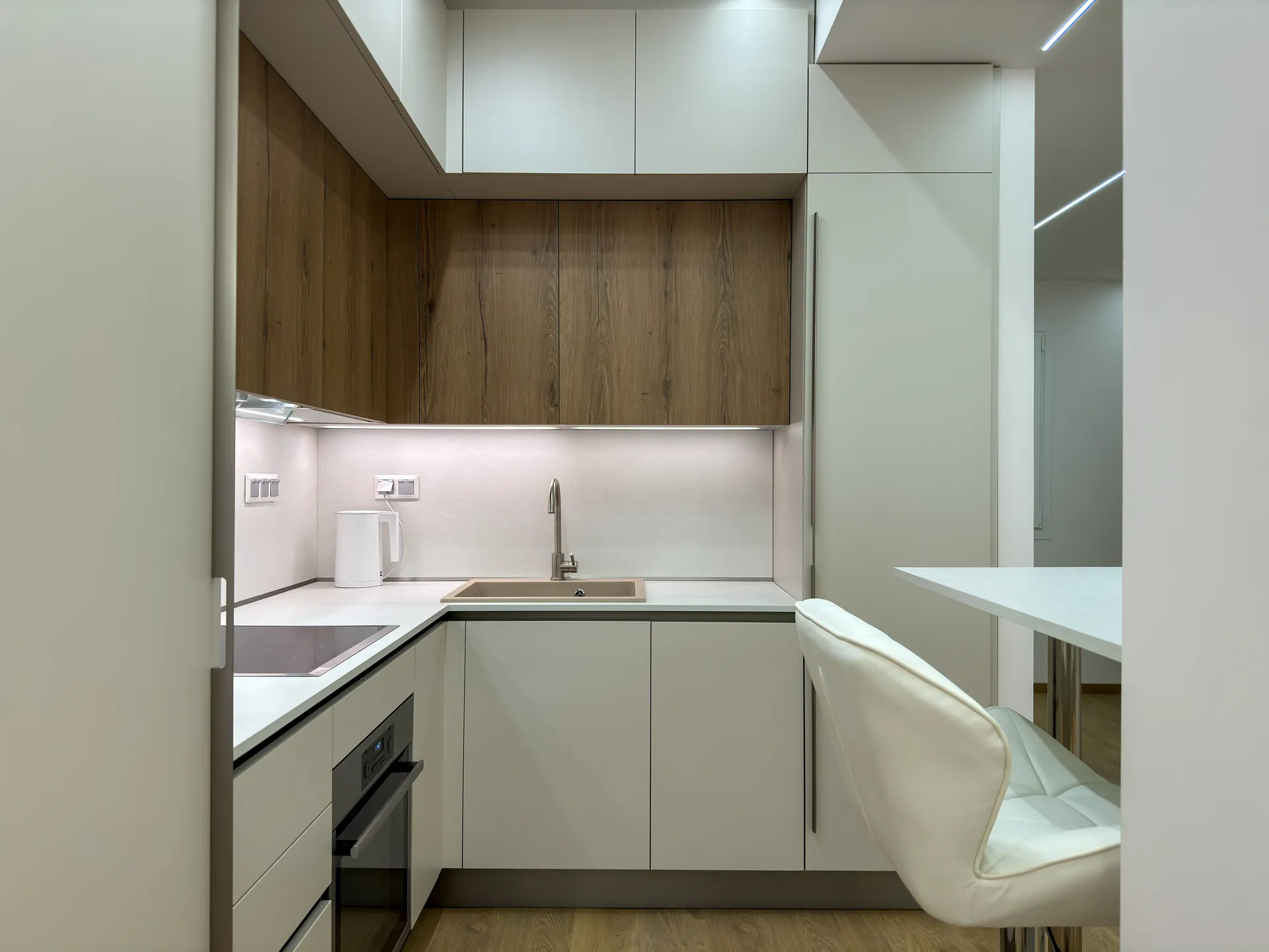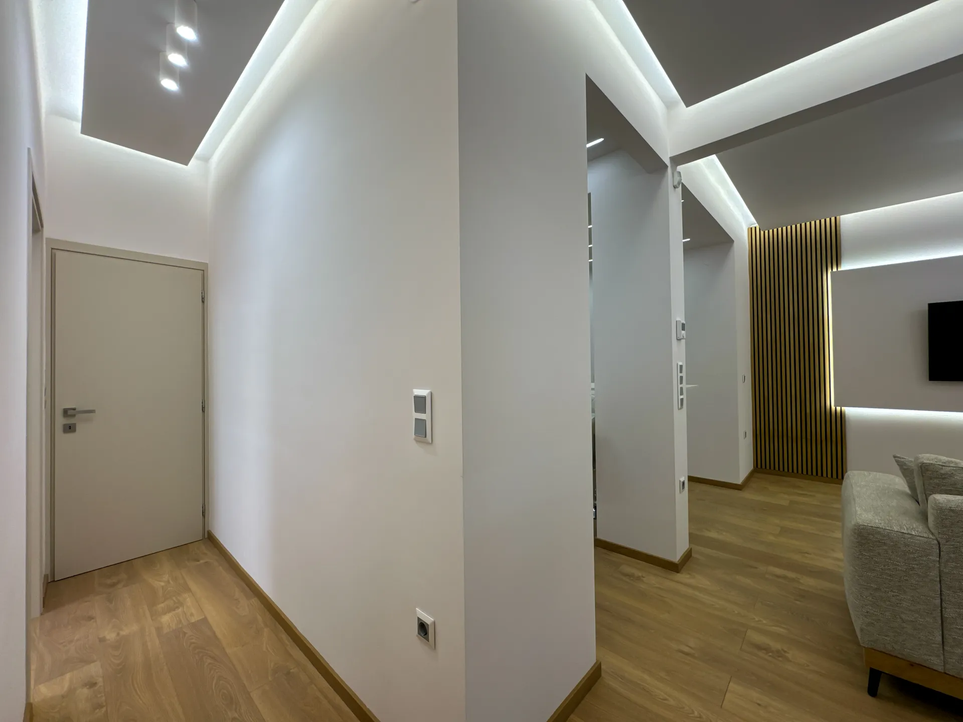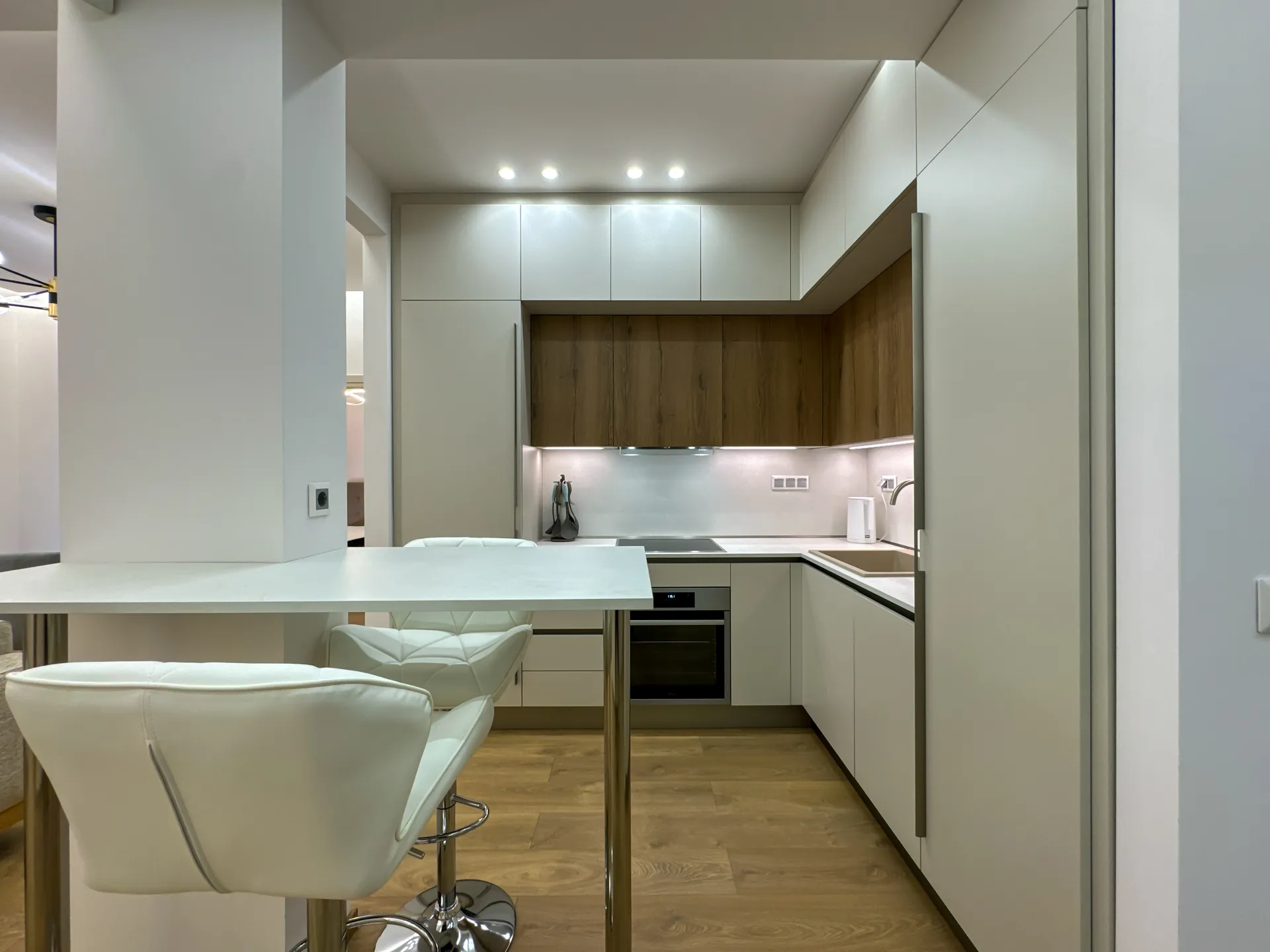 Το έργο αφορούσε την ανακαίνιση και τον εκσυγχρονισμό διαμερίσματος στην περιοχή της Μ. Αλεξάνδρου. Κεντρικός στόχος ήταν η αναβάθμιση της λειτουργικότητας και η δημιουργία ενός άνετου, φωτεινού και σύγχρονου χώρου. Στο πλαίσιο της ανακαίνισης πραγματοποιήθηκαν εργασίες αντικατάστασης δαπέδων, νέες ηλεκτρομηχανολογικές εγκαταστάσεις, καθώς και ανακατασκευή της κουζίνας και του μπάνιου με έμφαση στη λεπτομέρεια και την ποιότητα των υλικών. Παράλληλα, εφαρμόστηκαν ενεργειακές παρεμβάσεις που συμβάλλουν σε χαμηλότερη κατανάλωση και βελτιωμένη καθημερινή άνεση. Το τελικό αποτέλεσμα συνδυάζει καθαρές γραμμές, μοντέρνα αισθητική και πρακτικές λύσεις που ανταποκρίνονται στις ανάγκες των ενοίκων, αναδεικνύοντας το διαμέρισμα σε έναν χώρο ζεστό, λειτουργικό και υψηλής ποιότητας.